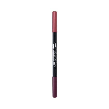 Double lip pencil , διπλό μολύβι χειλιών για απίθανους συνδυασμούς! Μολύβι με δύο αποχρώσεις σε διαφορετικούς τόνους για να παίξετε με τα χρώματα και τους συνδυασμούς. Περιγράψτε τα χείλη είτε συνδυάζοντας τις αποχρώσεις είτε με τα αγαπημένα σας κραγιόν. μολύβι μεγάλης διάρκειας δεν αλοιώνεται με νερό