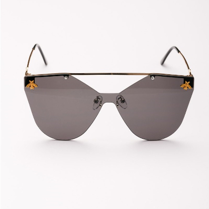 Γυαλιά ηλίου με χρυσί σκελετό, μαύρο φακό και διακοσμητικές χρυσές μέλισσες. Ιδιαίτερο αξεσούαρ για όλες τις εμφανίσεις σας.