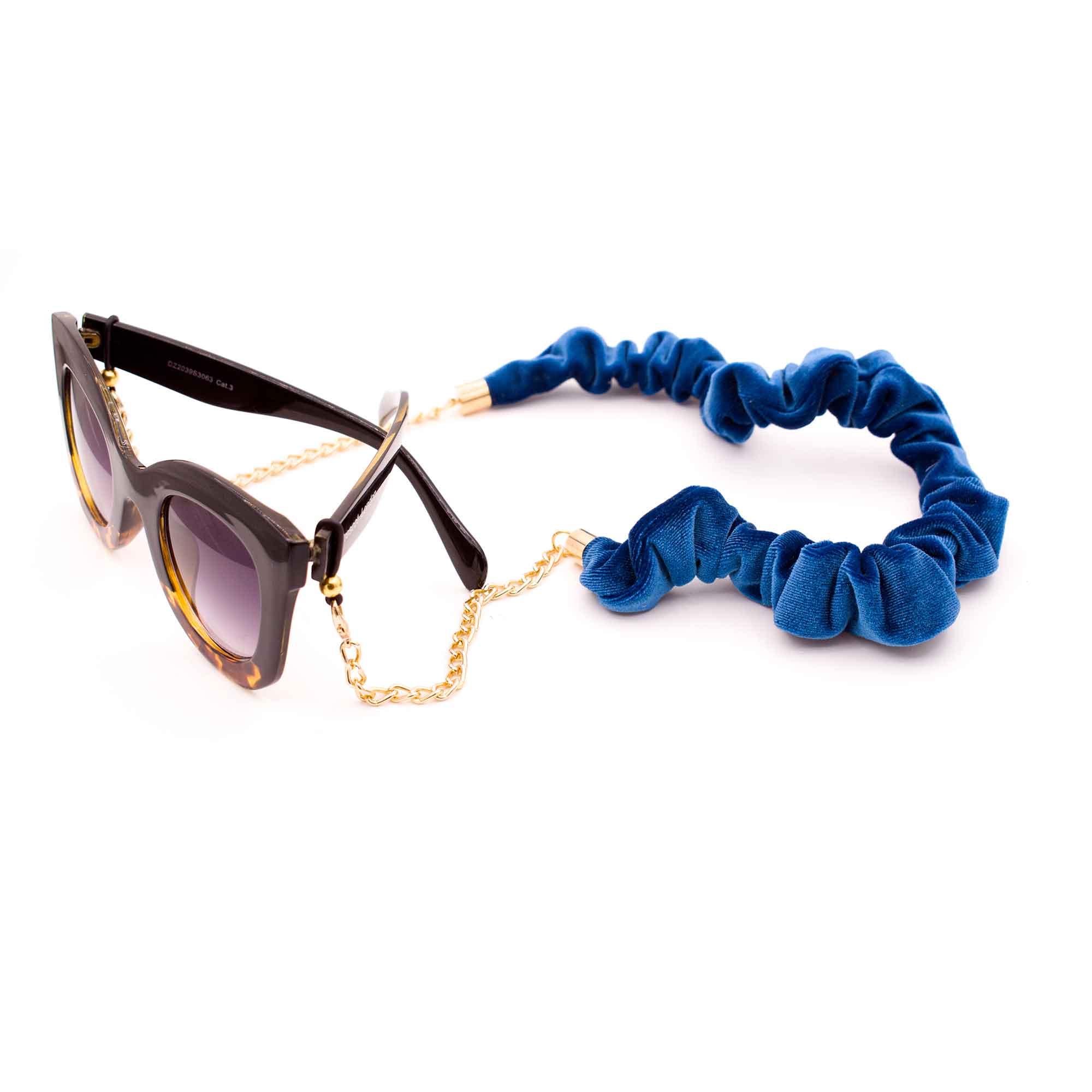 Λουράκι για γυαλιά/μάσκα με ασημί αλυσίδα και grey scrunchie από βελούδο. Κρατήστε τα γυαλιά σας ή τη μάσκα σας κοντά σας με στιλ.