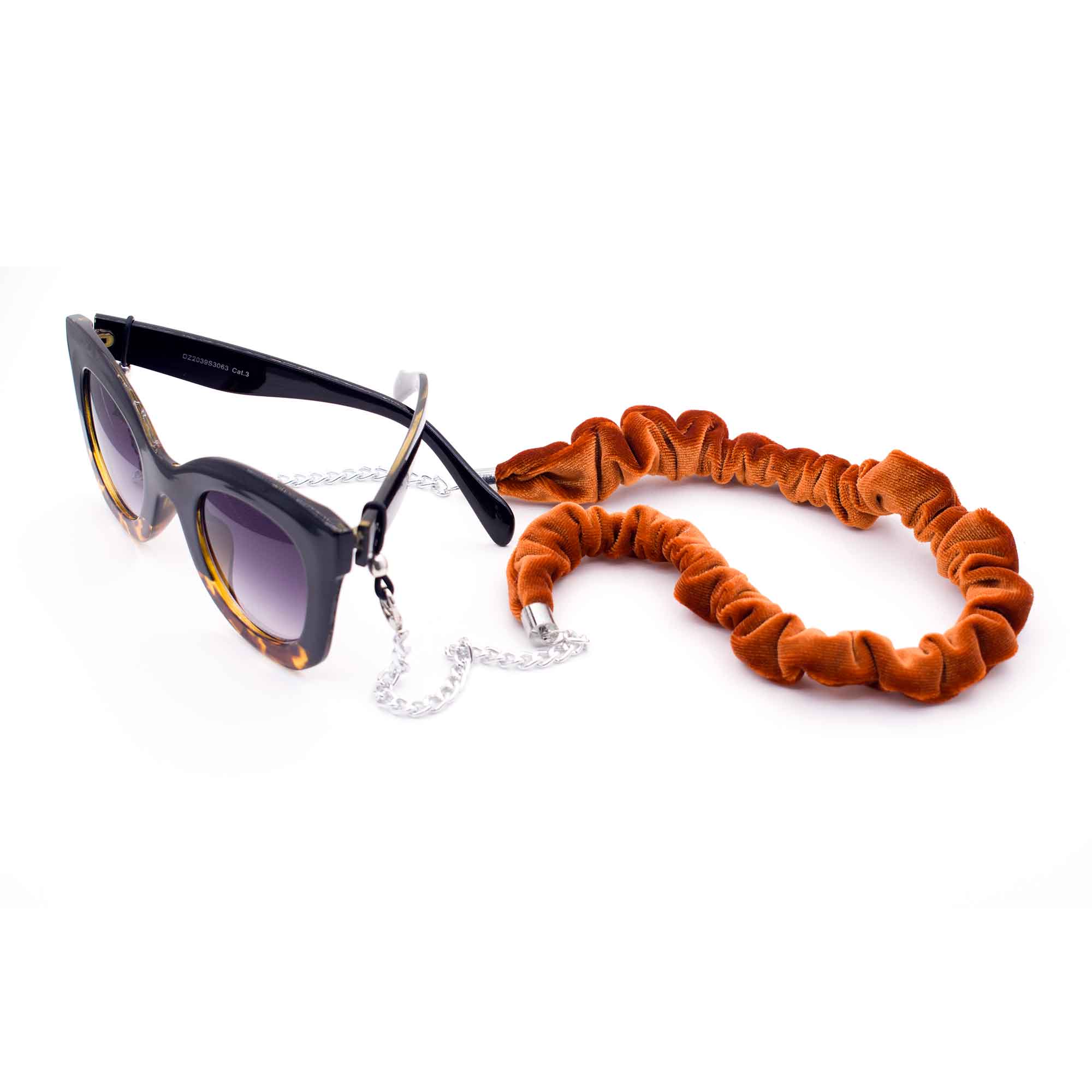 Λουράκι για γυαλιά/μάσκα με ασημί αλυσίδα και grey scrunchie από βελούδο. Κρατήστε τα γυαλιά σας ή τη μάσκα σας κοντά σας με στιλ.