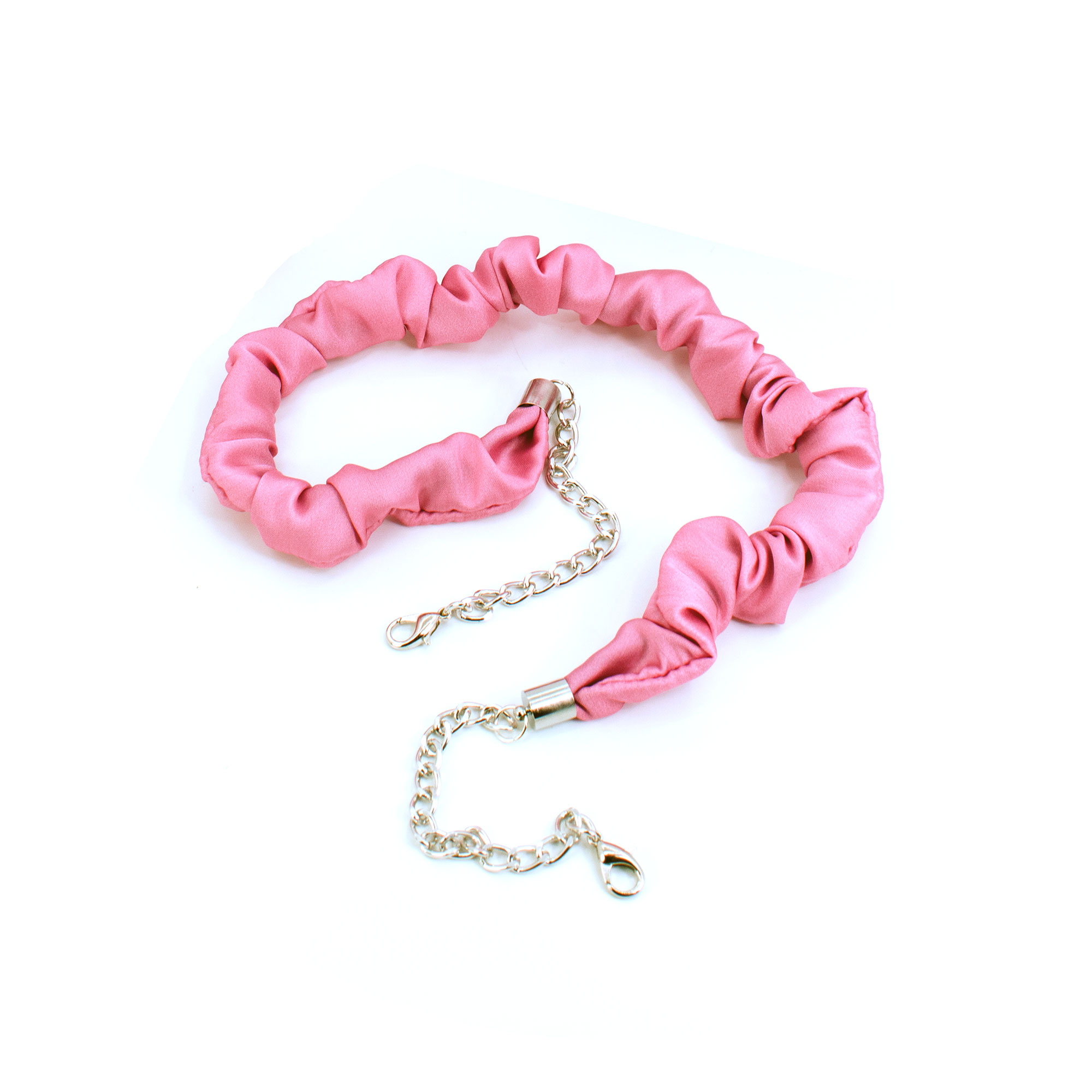 Λουράκι για μάσκα με μονόχρωμο ύφασμα από τεχνητό μετάξι και βαμβακερό 100% ύφασμα και μεταλλική αλυσίδα σε χρώμα ασημί.
