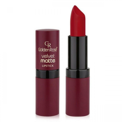 Η Velvet Matte Lipstck σειρά της GOLDEN ROSE είναι ασυναγώνιστη τόσο για τα ματ χρώματα της όσο και για την βελούδινη υφή της στα χείλη σας!Περιέχει Βιταμίνη Ε και άλλους ενυδατικούς παράγοντες που θρέφουν και ενυδατώνουν τα χείλη σας. Η νέα σύνθεση της χαρίζει επιπλέον διάρκεια και άκομα πιο έντονα και ελκυστικά χρώματα που θα λατρέψετε!Διαθέσιμη σε 38 μοντέρνους χρωματισμούς. Δερματολογικά Ελεγμένο, paraben free, gluten free, cruelty free.